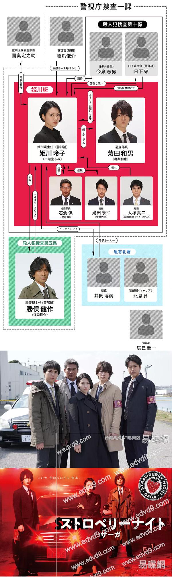 本劇改編自譽田哲也以警視廳搜查一課刑事·姬川玲子的活躍所描繪的小說系列為原作,並在2012年播出的由竹內結子(38)主演的富士臺電視劇「草莓之夜」的前作基礎上將卡司和制作陣容全部換新,以原作小說沒有被映像化的章節為基礎進行再構成。首次連續劇主演的富美在劇中飾演的是警視廳 搜查一課殺人犯搜查第十系主任·姬川玲子,作為搜查課唯一的女性班長,以敏銳的直覺和行動力作為武器,每次都率領『姬川班』逼近各種疑難案件的真相。龜梨在劇中飾演的則是比姬川年長的部下,巡查部長·菊田和男,性格一本正經且沈默寡言的他討厭拐彎抹角,內心深處隱藏著熱情的男子氣概,在被調到搜查一課姬川班的當初,對姬川還是抱有著懷疑的心態,而隨著一起追查案件深入的同時,他發現自己已對姬川萌生出了特別的感情。另外,江口洋介(51)飾演姬川的天敵,警視廳搜查一課殺人搜查第五系主任·勝俁健作,被稱為“鋼鐵”刑警的他以壓倒性的揭發率首位而自豪,擁有8年公安經歷的他是公認的老練刑警,擅長各種信息收集的他也會因為打破常規的搜查方法從而招到各種各樣的質疑聲。