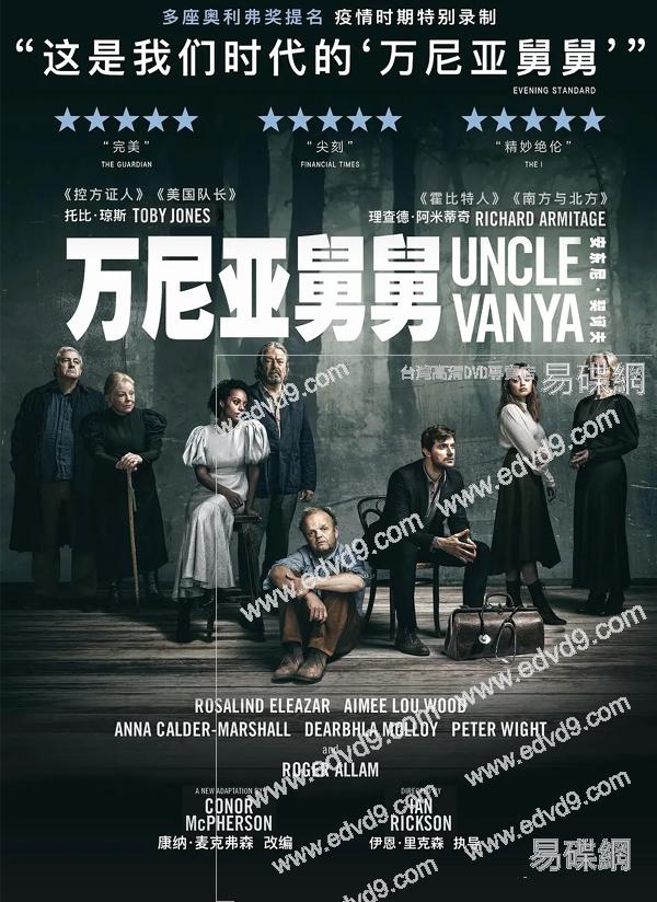 劇情簡介:疫情時期特別錄制、倫敦西區2020年全新復排版契訶夫名作《萬尼亞舅舅》在結束演出後,又重回哈羅德·品特劇院錄制了這一五星作品。在全球大部分劇院仍處於黑暗之中時,給人們帶來一劑警醒的力量和希望。被《旗幟晚報》譽為“我們時代的‘萬尼亞舅舅’”。此版復排由奧利弗獎得主、出演過《美國隊長》《控方證人》等劇的托比·瓊斯,和因《霍比特人》《南方與北方》走紅的理查德·阿米蒂奇領銜主演,錄制版本還邀請到兩度奧利弗獎得主羅傑·阿拉姆加盟,卡司陣容十分搶眼。劇本由康納·麥克弗森全新改編,著名導演伊恩·裏克森再度操刀,獻上一部"完美"“尖刻”“精彩絕倫”的復排,獲得包括最佳話劇男演員、最佳導演在內的四項奧利弗獎提名。契訶夫名作《萬尼亞舅舅》講的是精神信仰的幻滅,從另一個角度看蘊含著重建的希望:萬尼亞舅舅和他的外甥女索尼婭常年住在鄉下莊園,只有醫生阿斯特羅夫偶爾來訪。萬尼亞舅舅日復一日莊園勞作、翻譯著述和謄寫稿子,都是為了索尼婭的父親、他的姐夫謝列勃裏雅科夫教授。對教授的崇拜,支撐了萬尼亞舅舅半生辛苦的價值,然而教授帶著新婚的年輕妻子回到莊園時,一切秩序和幻想都被打破了……