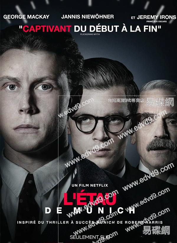 劇情簡介: 本片改編自羅伯特·哈裏斯的國際暢銷書。1938 年的秋天,歐洲正處於戰爭的邊緣。阿道夫·希特勒準備入侵捷克斯洛伐克,內維爾·張伯倫政府拼命尋求和平解決方案。眼見局勢升溫,英國公務員休·萊格特和德國外交官保羅·馮·哈特曼前往慕尼黑參加緊急會議。隨著談判開始,這兩位老友發現自己落入了政治詭計布下的巨網,正面臨異常的危險。在全世界的註視下,戰爭能否避免?如果可以,需要付出什麽代價?