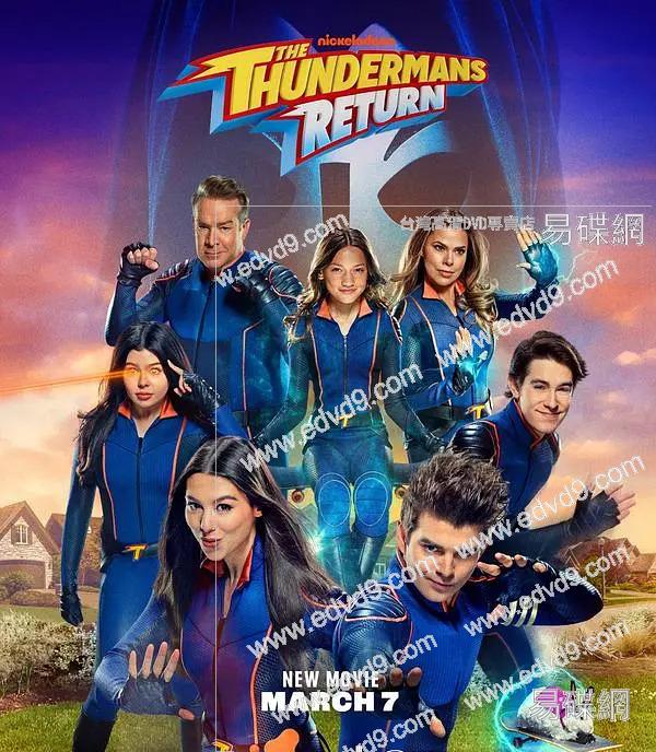《雷神歸來》講述了雙胞胎菲比和麥克斯在一個新城市享受超級英雄生活的故事,但當一次“拯救”出了問題時,雷神一家被送回了Hiddenville。Hank和Barb很享受他們的回歸,Chloe建立了一個新的朋友群,Billy和Nora開始了正常的高中生活,Max和Phoebe決心重新獲得他們的超級英雄地位。這部電影的特點是回歸了最受歡迎的節目,包括熟悉的地點和新的威脅性超級反派。