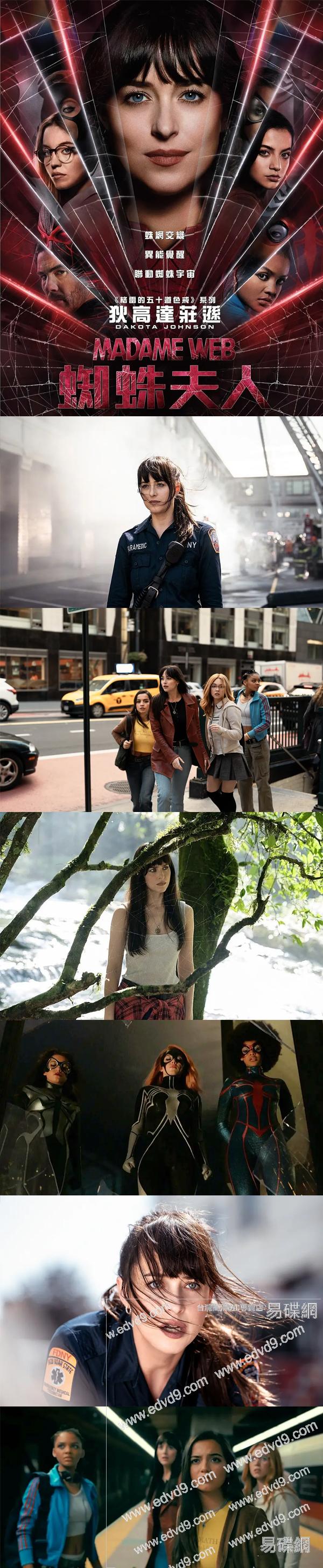 劇情簡介: 電影講述了漫威漫畫中最神秘的女超級英雄的起源故事。急救護工凱茜(蜘蛛夫人,達科塔·約翰遜 Dakota Johnson 飾)因一場意外發現自己能夠預知未來,在探尋能力起源的過程中,她與三位蜘蛛女的命運緊密聯結在一起。面對反派“毒蜘蛛”以西結的追殺,蜘蛛夫人試圖找明原因。穿梭在時間線中的她們將如何利用預知未來的能力改變世界命運?