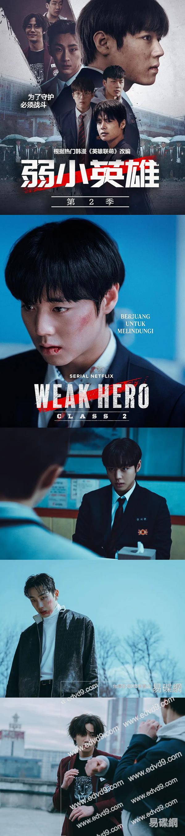 2025年最新校爆動作韓劇《弱美男英雄》共1-2季合集 改編自徐霸和金珍石創作的同名網絡漫畫 描繪位居上遊1%的模範生延時恩和他第一次交到的朋友秀浩 範錫一起對抗暴力事件的成長過程... 劇情簡介: 該劇講述為了朋友而對抗暴力,但最終沒能守護朋友而留下心理創傷的模範生延時恩轉學到銀章高中後,因為不能再失去朋友而選擇與更強大的暴力對抗時發生的悽慘的生存記和燦爛的成長故事
