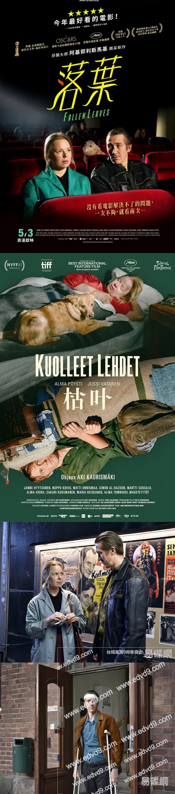 2024年5月在臺灣院綫上映 《勒阿弗爾》芬蘭名導 阿基·考裏斯馬基 2023全新力作 提名戛納影展金棕櫚獎及金球獎最佳女主角獎 北歐底層男女生活猶如枯葉, 但浪漫愛情的滋潤卻讓枯葉逢春 劇情簡介: 故事講述兩個孤獨的人在赫爾辛基的夜晚偶然相遇,並試圖找到彼此生命中的第一個,唯一且最終的愛。他們通往這個目標的道路被男人的酗酒、丟失的電話號碼、不知道彼此名字或地址,以及生活總傾向於在那些尋求幸福的人的道路上設置障礙所籠罩。