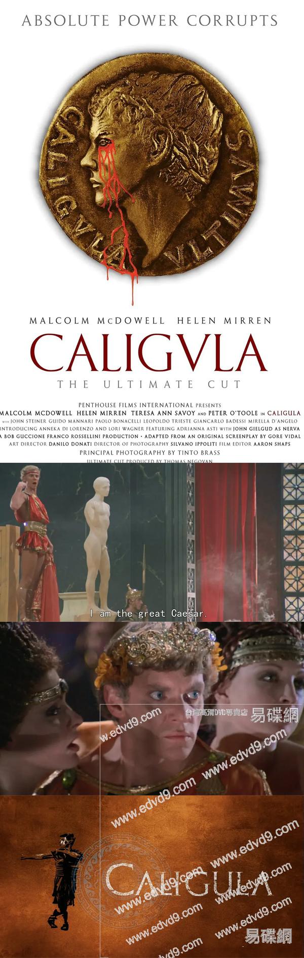 這部電影完全重新構想了《卡利古拉:暴君的崛起與隕落》(1979 年),基於 96 小時從未公開過的鏡頭,這些鏡頭是在電影上映多年後恢復的。