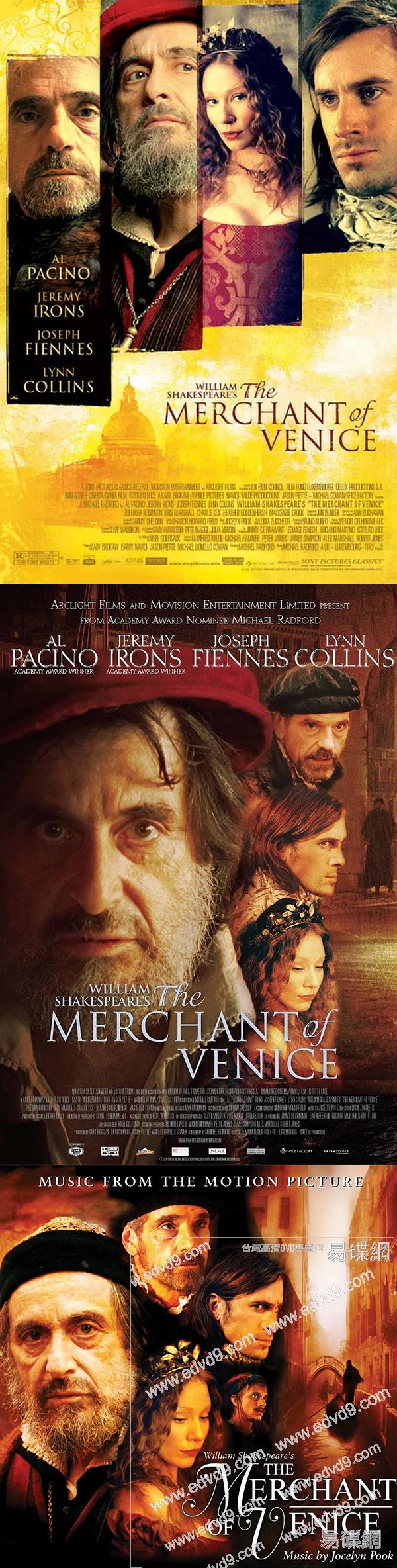年輕人巴薩尼奧(約瑟夫·費因斯 Joseph Fiennes飾)壹心要向富商千金鮑西婭小姐(琳恩·柯林斯 Lynn Collins飾)求婚,為了這個願望,他必須付出三千達克特,無奈中他只好向熱心腸的商人安東尼奧(傑裏米·艾恩斯 Jeremy Irons飾)借錢。碰巧的是,安東尼奧因為生意周轉的問題,只能問猶太人夏洛克(阿爾·帕西諾 Al Pacino飾)借來這筆錢。