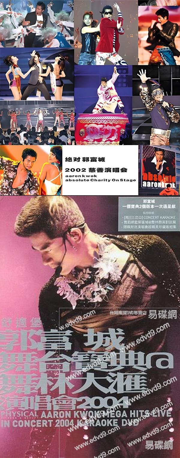 1.郭富城:2002绝对慈善演唱会 该专辑以香港演唱会实况为基础,完整呈现《全城之宝》《Para Para Sakura》《绝对美丽》等代表作舞台表演。曲目编排集中展示其标志性舞蹈编排与舞台效果,包含多首劲热舞曲。 2.郭富城舞台宝典@舞林大汇演唱会2004 郭富城是香港歌手、舞者和演员。自20世纪80年代活跃至今,郭富城被誉为香港流行乐坛"四大天王"之一。因其舞台舞蹈深受已故美国表演者迈克尔·杰克逊的影响,他被冠以"舞王"的称号。