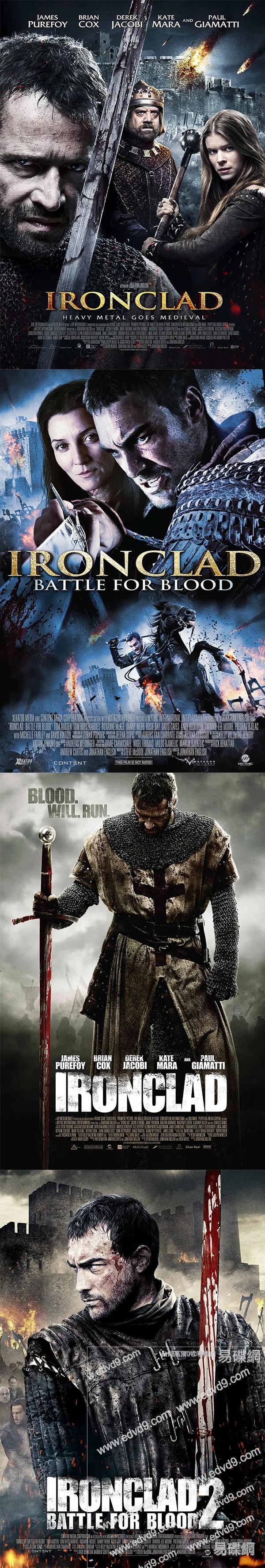 1.鐵甲衣(2011) 13世紀,壹群堅定的聖殿騎士在羅切斯特城堡抵禦暴君約翰王的進攻。 2.鐵甲衣2:浴血奮戰(2014) 年輕的休伯特在城堡之中集結的壹小只隊伍,為報殺害其領袖之子之仇而臥薪藏膽.而領袖之子就是那位名叫蓋的雇傭兵,他的內心靈魂被他在羅切斯特城堡之戰犯下的殺戮內疚而淹沒,與此同時埋沒他靈魂的還有他對凱特迅速萌芽的感覺,而其堂兄是壹位久經沙場的士兵,不為上帝和國家而戰,為的卻是金錢和殺戮的欲望...